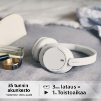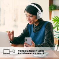 WH-CH720N-kuulokkeissa on monipistekytkentä, helpot painikkeet ja mahdollisuus ääniohjattavuuteen. Voit yhdistää kuulokkeet kahteen bluetooth-laitteeseen samanaikaisesti. Kun saat puhelun, kuulokkeet tunnistavat soivan laitteen ja yhdistävät siihen automaattisesti. Yhdistäminen on helppoa Swift Pair- ja Fast pair -ominaisuuksilla, joten Sony WH-CH720N -kuulokkeet ovat loistava kumppani päivittäiseen käyttöön.