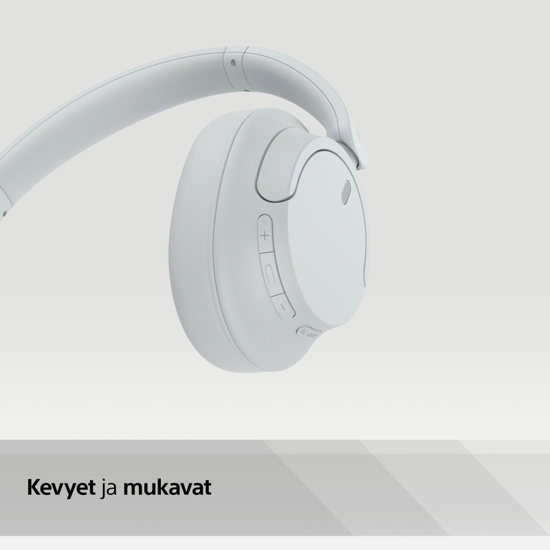 WH-CH720N-kuulokkeet painavat vain 192 grammaa, mikä tekee niistä uskomattoman kevyet vastamelukuulokkeet. Ne tarjoavat ennennäkemätöntä mukavuutta teknologiasta tinkimättä. Pehmeät, soikeat korvatyynyt takaavat, että mukavuus säilyy myös pidempien kuuntelusessioiden aikana.