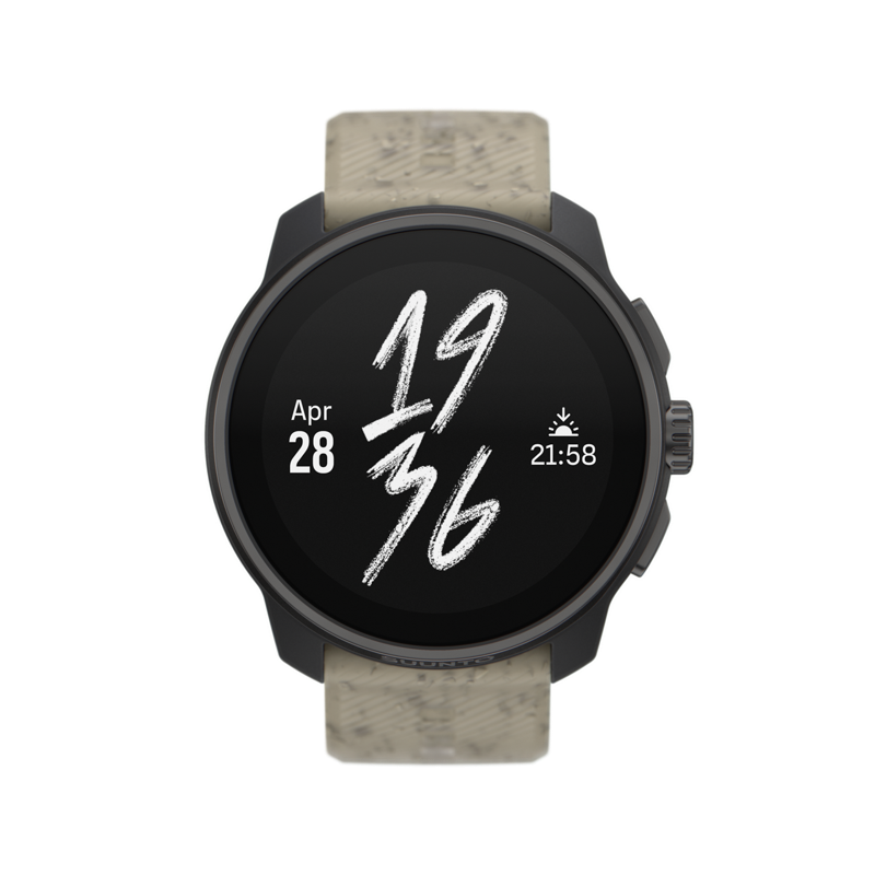 Suunto Race S -urheilukellon kirkas 1,32 tuuman kosketusnäyttö on helposti luettavissa vauhdikkaissakin tilanteissa sekä auringonvalossa. Kätevän digitaalisen kruunupainikkeen ansiosta kellon toimintojen selaaminen on helppoa. Suunto Race S on testattu sotilasstandardien mukaisesti, joten voit ottaa sen mukaan vaativimpiinkin olosuhteisiin.