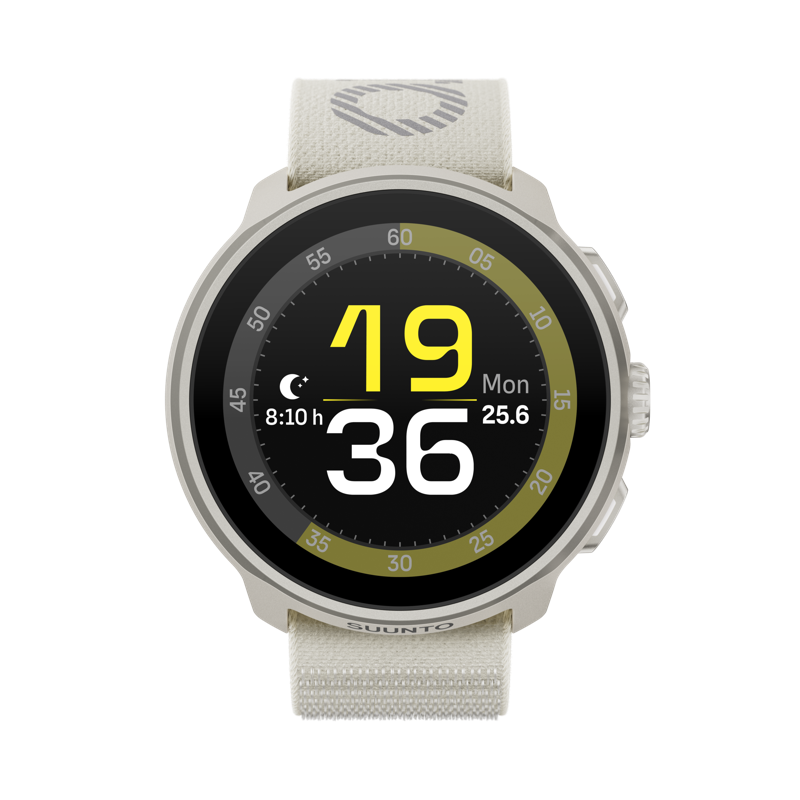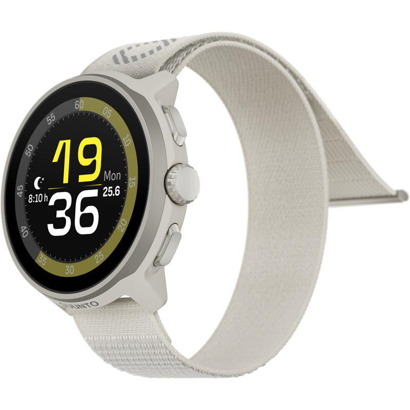 Höyhenenkevyt kello on miellyttävä käyttää, ja se mittaa sykkeen ranteesta tarkasti joka lenkillä. Vain 36 grammaa painava Suunto Run on Suunnon kevyin kello, ja sen minimalistinen tekstiiliranneke istuu ranteeseen napakasti. Jotta sinä voit keskittyä askeliisi, ei ranteeseesi.