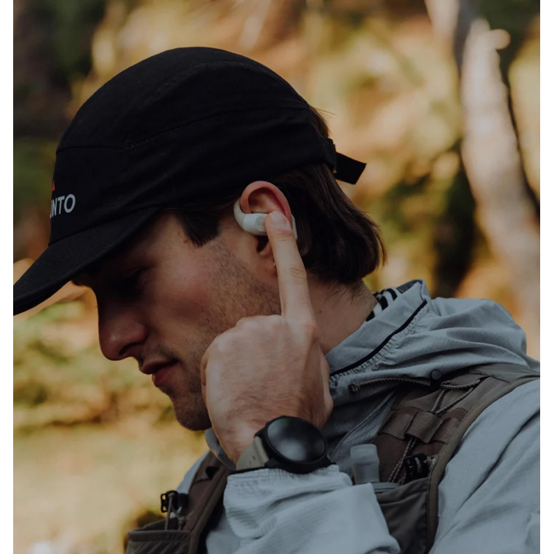 Jokainen alle 10 grammaa painava nappikuuloke on viimeistelty pehmeällä, ihoystävällisellä silikonilla, joten se tuntuu kevyeltä ja mukavalta koko päivän.Ohut, silikonipinnoitettu muistotitaanilenkki seuraa korvasi muotoa ja pitää istuvuuden napakkana liikkeessä, jotta voit keskittyä hetkeen.