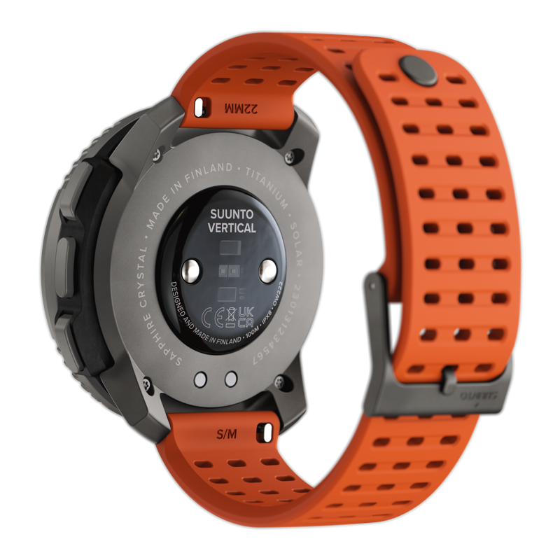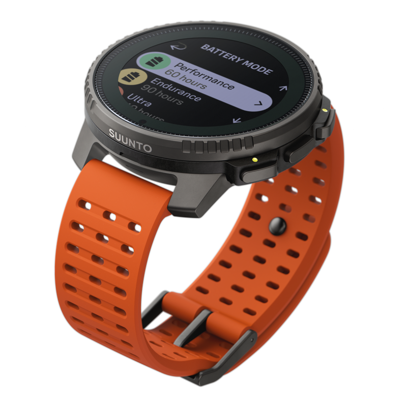Suunto Verticalin akun kesto on kilpailijoitaan parempi: tässä titaanista valmistetussa auringossa latautuvassa mallissa akku kestää 85 tuntia harjoittelun seurantaa kaikkein tarkimmalla GPS-asetuksella. Päivittäistilassa Suunto Vertical titaanista valmistettu auringossa latautuva malli toimii jopa yhden kokonaisen vuoden ilman latausta!