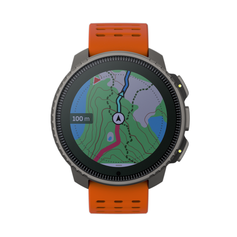 Suunto Verticalin intuitiiviset kartat kertovat kaiken, mitä sinun tulee tietää maastosta. Maaston korkeuskäyrät, vesialueet, reitit ja muut tärkeät kiintopisteet näkyvät kolmessa erilaisessa karttanäkymässä. Turvallisuuden takaamiseksi kaikkia navigointitoimintoja voidaan käyttää myös offline-tilassa. Et siis koskaan eksy tutkimusretkilläsi!