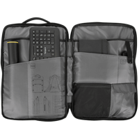 Matkapuhelin, henkilökohtaiset lisävarusteet, digitointikynä, hiiri, näppäimistö, avaimet, lompakko, sadesuoja, vetoketjulliset verkkotaskut, piilotettu vesipullonpidike, lannerangan pehmustettu tasku