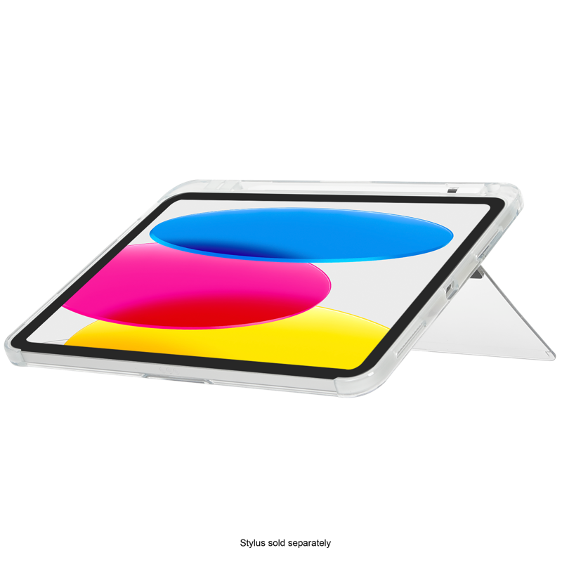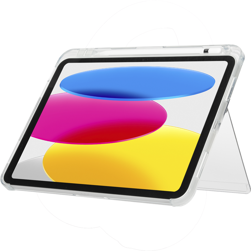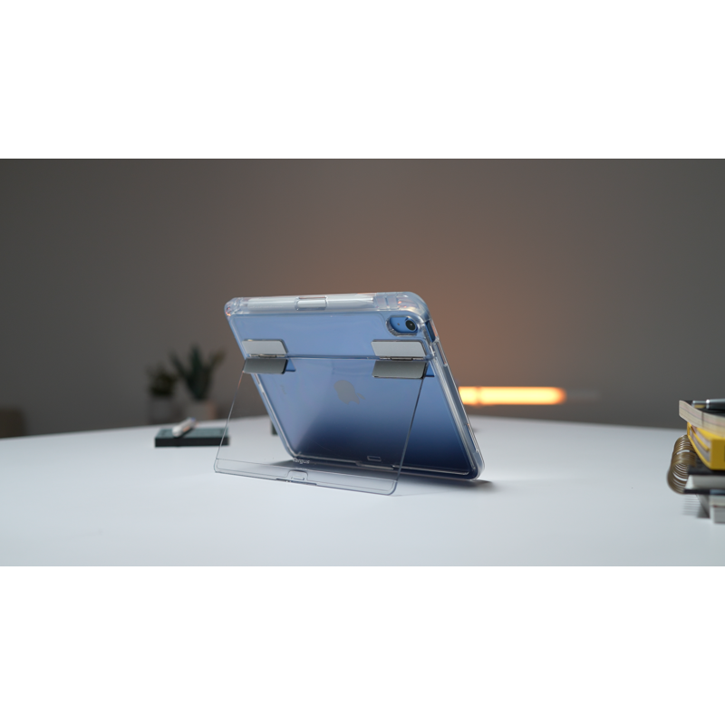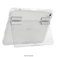 Anna iPadisi näkyä Targus Click-In Kickstand Clear Cover for iPad (A16) 11" ja (10th gen.) 10.9” -suojakuoressa. Sen kirkas takaosa antaa laitteesi tyylikkään värin näkyä. Kickstand Cover on suunniteltu suojaamaan laitettasi ilman ylimääräistä painoa. Kickstand Clear Cover suojaa laitteen takaosan, sekä sivut ja sen vahvistetut kulmat tarjoaa military standard -tason pudotussuojan (jopa 1,2 metriin asti) ohuessa muotoilussa. Sen sisäänrakennettu jalusta kääntyy ulos tarjoten käyttö- ja katselumahdollisuuden useissa eri kulmissa. Suojakuoressa integroitu paikka Stylus-, tai Apple Pencil -kynälle (myydään erikseen). Kickstand Cover on myös yhteensopiva Applen Smart Folio:n ja Magic Keyboard Folio:n kanssa (myydään erikseen). *Kolmannen osapuolen testaama MIL-STD-810G, Method 516.6, Procedure IV.