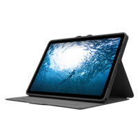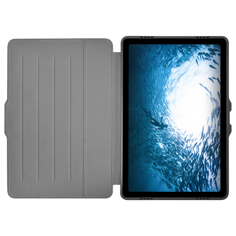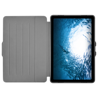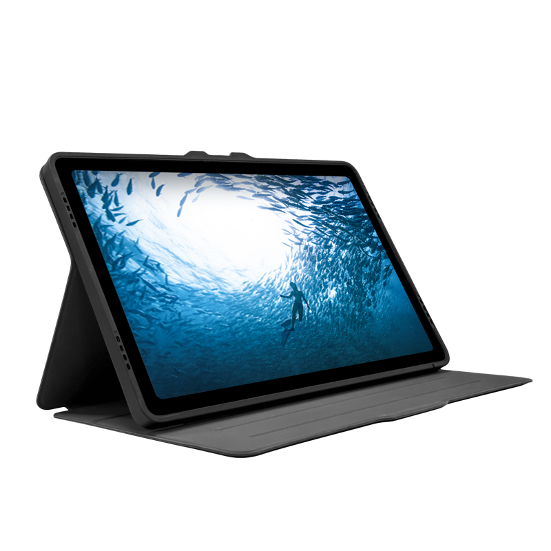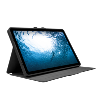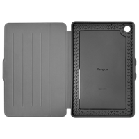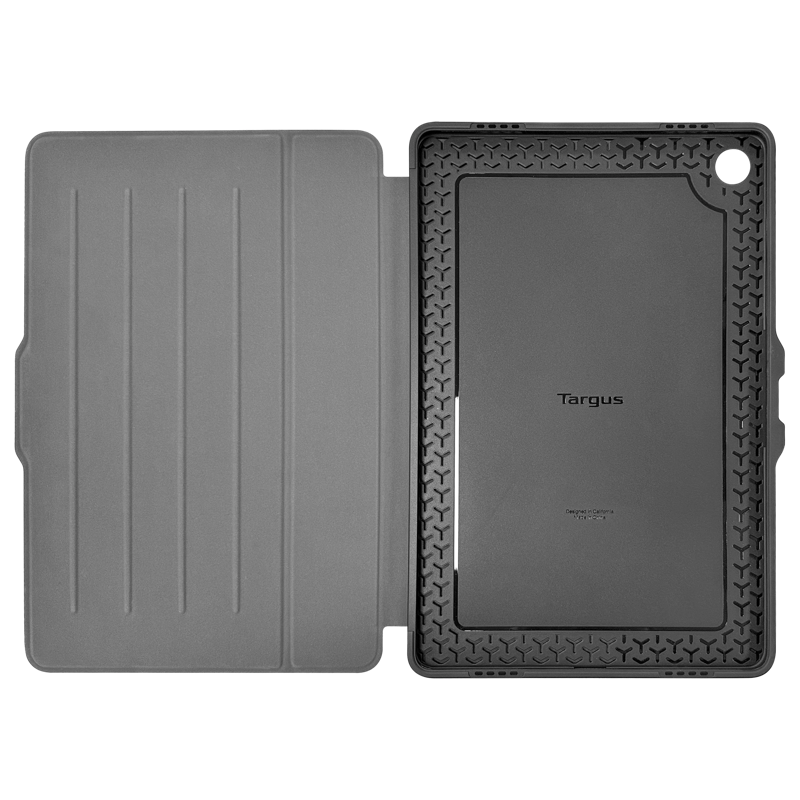 Targus Click-in -suojakotelo Samsung Tab A9+ mallille. Suojakuoressa on iskuja vaimentava alusta, joka kiinnittyy turvallisesti tabletin ympärille suojaten sen etu- ja takaosaa ja sivuja kolhuilta, putoamisilta ja naarmuilta. Suojakotelolle on myönnetty MIL-STD 810G iskusuojaus, eli se suojaa jopa 1,2 metrin pudotukselta. Patentoitu alusta varmistaa pääsyn kaikkiin tabletin portteihin ja kameraan. Etukannessa on automaattinen käynnistys/lepotilatoiminto ja pehmeä sisäpuoli, joka suojaa näyttöä ja muuntuu telineeksi. Targuksen tablet-koteloilla on rajoitettu elinikäinen vaihtotakuu.