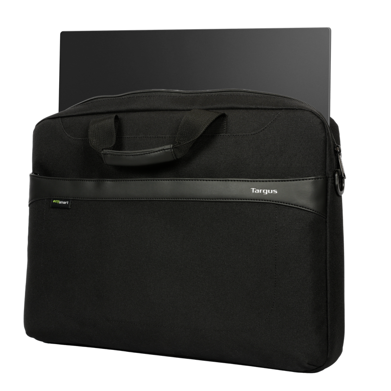 Pidä tavarasi järjestyksessä GeoLite EcoSmart Slim Brief -tietokonelaukussa. Tyylikäs muotoilu, sekä kunnollinen tietokoneen suojaus tekevät laukusta kätevän kumppanin päivään. GeoLite Slim Brief on mukavan ohut ja sen jaetussa kannettavan tietokoneen osiossa on tilaa myös muistiinpanolehtiöille, sekä asiakirjoille. Vetoketjullinen etulokero tarjoaa kätevän säilytyksen laturille ja muille lisävarusteille. Sen irrotettava olkahihna, pehmeät kantokahvat, hihna matkalaukun vetoaisalle, vettä hylkivä ulkopuoli tarjoavat tyyliä, toimivuutta ja kestävyyttä. Targus EcoSmart laukut ja reput on valmistettu GRS-sertifioiduista kierrätysmateriaaleista ympäristöä ja sujuvaa matkustamista ajatellen. Tämän laukun valmistukseen on mm. käytetty 2 kierrätettyä muovipulloa, jotka näin pidettiin poissa päätymästä rasittamaan maailman meriä ja kaatopaikkoja. Muovipullot kerättiin, murskattiin pieniksi hiutaleiksi, polymeroitiin uudelleen muovilastuiksi, kuumennettiin ja kehrättiin langaksi, joka ommeltiin tähän EcoSmart laukun kankaaseen. Myös paketointi on vastuullisesti tuotettu ja FSC-sertifioitu.