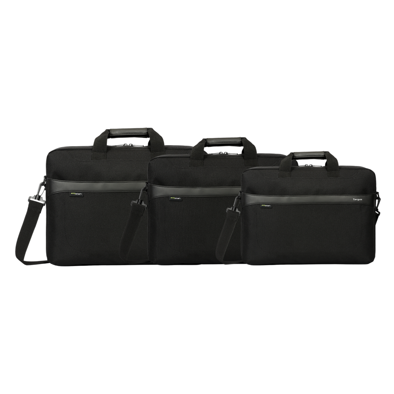 Pidä tavarasi järjestyksessä GeoLite EcoSmart Slim Brief -tietokonelaukussa. Tyylikäs muotoilu, sekä kunnollinen tietokoneen suojaus tekevät laukusta kätevän kumppanin päivään. GeoLite Slim Brief on mukavan ohut ja sen jaetussa kannettavan tietokoneen osiossa on tilaa myös muistiinpanolehtiöille, sekä asiakirjoille. Vetoketjullinen etulokero tarjoaa kätevän säilytyksen laturille ja muille lisävarusteille. Sen irrotettava olkahihna, pehmeät kantokahvat, hihna matkalaukun vetoaisalle, vettä hylkivä ulkopuoli tarjoavat tyyliä, toimivuutta ja kestävyyttä. Targus EcoSmart laukut ja reput on valmistettu GRS-sertifioiduista kierrätysmateriaaleista ympäristöä ja sujuvaa matkustamista ajatellen. Tämän laukun valmistukseen on mm. käytetty 2 kierrätettyä muovipulloa, jotka näin pidettiin poissa päätymästä rasittamaan maailman meriä ja kaatopaikkoja. Muovipullot kerättiin, murskattiin pieniksi hiutaleiksi, polymeroitiin uudelleen muovilastuiksi, kuumennettiin ja kehrättiin langaksi, joka ommeltiin tähän EcoSmart laukun kankaaseen. Myös paketointi on vastuullisesti tuotettu ja FSC-sertifioitu.