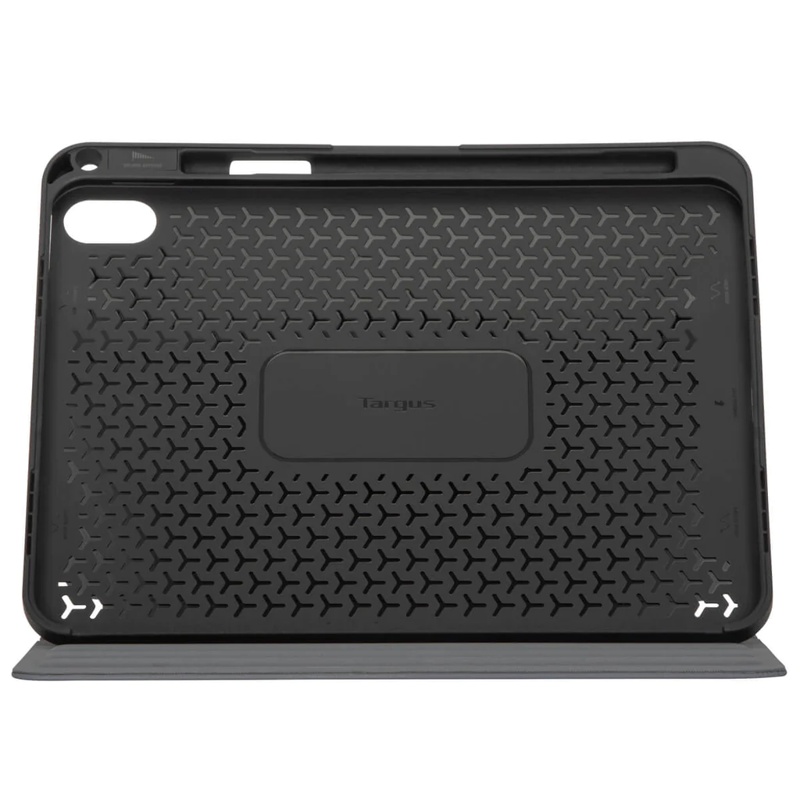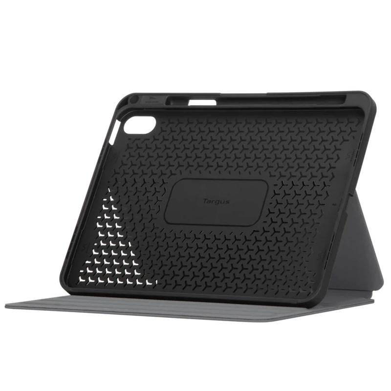 Targus Click-in -suojakotelo Apple iPad 10,9" A16 & 10. sukupolvi -malleille. Siinä on iskuja vaimentava alusta, joka kiinnittyy turvallisesti tabletin ympärille suojaten sen etu- ja takaosaa ja sivuja kolhuilta, putoamisilta ja naarmuilta. Patentoitu alusta varmistaa pääsyn kaikkiin tabletin portteihin ja kameraan. Integroitu Apple Pencil- tai Stylus- / kynäpidike, joka on yhteensopiva Apple Pencil (2. sukupolvi) langattoman latauksen kanssa (kynä myydään erikseen). Etukannessa on pehmeä sisäpuoli, joka suojaa näyttöä ja muuntuu telineeksi. Suojakotelolle on myönnetty MIL-STD 810G iskusuojaus, eli se suojaa jopa 1,2 metrin pudotukselta. Targuksen tablet-koteloilla on rajoitettu elinikäinen vaihtotakuu.