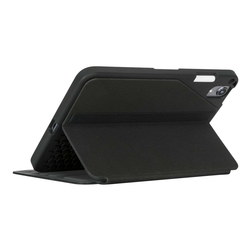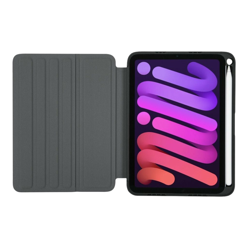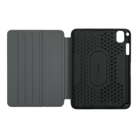 Targus Click-in -suojakotelo sopii Apple iPad mini A17 Pro ja mini 2021 (gen. 6) malleille. Siinä on iskuja vaimentava alusta, joka kiinnittyy turvallisesti tabletin ympärille suojaten tablettia iskuilta, naarmuilta ja putoamisilta jokaista kulmaa myöten. Suojakotelo ei estä tabletin porttien tai kameroiden käyttöä. Suojakotelossa on integroitu Apple Pencil- kynäpidike, joka on yhteensopiva Apple Pencil (2. sukupolvi) langattoman latauksen kanssa (kynä myydään erikseen). Etukannessa on automaattinen käynnistys/lepotilatoiminto ja pehmeä sisäpuoli, joka suojaa näyttöä. Lisäksi kotelo on taitettavissa niin, että saat siitä kätevän telineen tabletille. Suojakotelolle on myönnetty MIL-STD 810G iskusuojaus, eli se suojaa jopa 1,2 metrin pudotukselta. Targuksen tablet-koteloilla on rajoitettu elinikäinen vaihtotakuu.