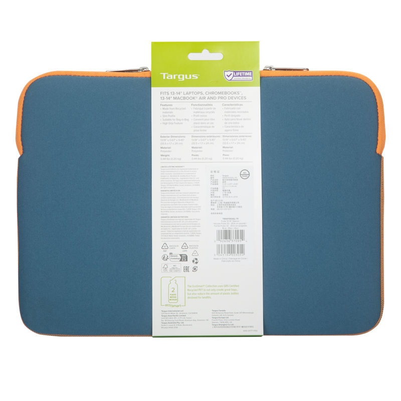 Pulse EcoSmart Sleeve yhdistää ohuen ja tyylikkään muotoilun sekä erinomaisen suojan kannettavalle tietokoneellesi. Sen ympäristöystävälliset materiaalit ja vettä hylkivä pinnoite suojelevat luontoa, sekä laitetta ulkopuolelta, kun taas pehmeä neopreenipehmuste ja sisävuori suojaa pieniltä kolhuilta, estäen tehokkaasti myös laitettaa naarmuuntumiselta.