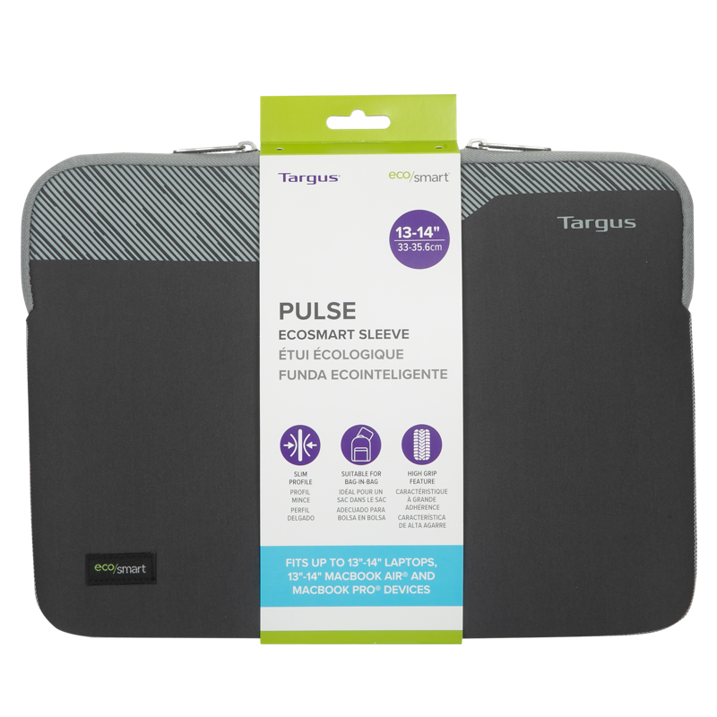 Pulse EcoSmart Sleeve yhdistää ohuen ja tyylikkään muotoilun sekä erinomaisen suojan kannettavalle tietokoneellesi. Sen ympäristöystävälliset materiaalit ja vettä hylkivä pinnoite suojelevat luontoa, sekä laitetta ulkopuolelta, kun taas pehmeä neopreenipehmuste ja sisävuori suojaa pieniltä kolhuilta, estäen tehokkaasti myös laitettaa naarmuuntumiselta.