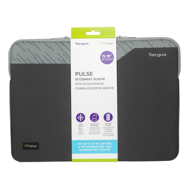 Pulse EcoSmart Sleeve yhdistää ohuen ja tyylikkään muotoilun sekä erinomaisen suojan kannettavalle tietokoneellesi. Sen ympäristöystävälliset materiaalit ja vettä hylkivä pinnoite suojelevat luontoa, sekä laitetta ulkopuolelta, kun taas pehmeä neopreenipehmuste ja sisävuori suojaa pieniltä kolhuilta, estäen tehokkaasti myös laitettaa naarmuuntumiselta.