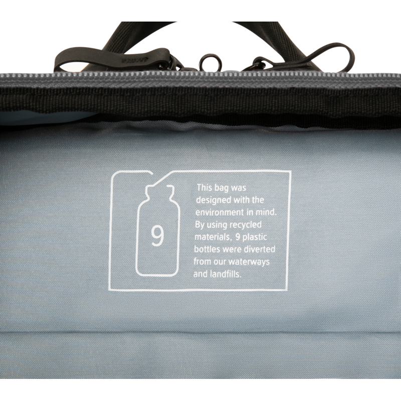 Targus EcoSmart -laukut ja reput on valmistettu GRS-sertifioiduista kierrätysmateriaaleista ympäristöä ja sujuvaa matkustamista ajatellen. Tämän 16” Sagano -repun valmistukseen on käytetty 9 kierrätettyä muovipulloa, jotka näin pidettiin poissa päätymästä rasittamaan maailman meriä ja kaatopaikkoja. Muovipullot kerättiin, murskattiin pieniksi hiutaleiksi, polymeroitiin uudelleen muovilastuiksi, kuumennettiin ja kehrättiin langaksi, joka ommeltiin tähän EcoSmart-laukun kankaaseen. Myös paketointi on vastuullisesti tuotettu ja FSC-sertifioitu.