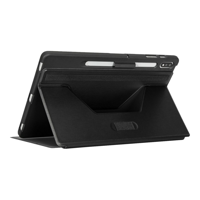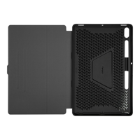 Targus Click-in -suojakotelo sopii Samsung Galaxy Tab S10+/S9+/S8+/S7+/S7 FE/S7 FE 5G -malleille. Siinä on iskuja vaimentava alusta, jonka saa kiinnitettyä turvallisesti tabletin ympärille. Se suojaa tablettia kolhuilta, naarmuilta ja putoamisilta niin edestä kuin takaa. Patentoitu alusta mahdollistaa pääsyn kaikkiin tabletin portteihin. Myös tabletin kamera on esteettä käytössä. Etukannessa on automaattinen käynnistys-/lepotilatoiminto ja pehmeä sisäpuoli, joka suojaa näyttöä. Lisäksi voit vaihtaa suojakotelon asentoa, jolloin se toimii kätevästi telineenä. Suojakotelolle on myönnetty MIL-STD 810G -iskusuojaus, eli se suojaa jopa 1,2 metrin pudotukselta. Targuksen tablettien suojakoteloilla on rajoitettu elinikäinen vaihtotakuu.