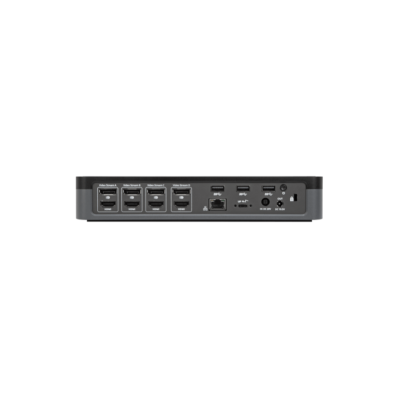 - Monipuolinen USB-kaapelitelakka neljälle ulkoiselle näytölle (HDMI tai DisplayPort)