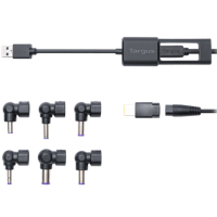 - Max latausteho USB-C laitteille 100W, lisäksi mukana toimitetaan perinteiset laitevalmistajien omat latauspäät mm. ASUS, Dell, HP ja Lenovo -laitteille