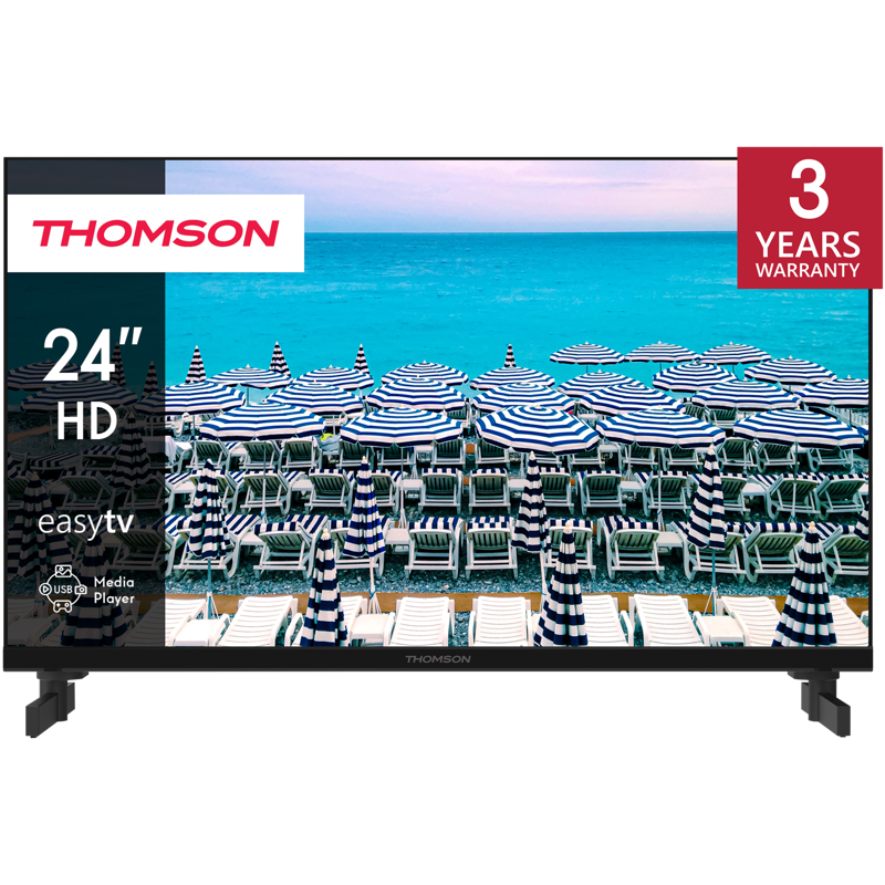 Uppoudu koko perheen kanssa älykkääseen viihteeseen Thomson 24" HD TV:n avulla. Sisäänrakennettu kolmoisviritin mahdollistaa vastaanoton satelliitin, antennin tai kaapelin kautta, joten voit vastaanottaa kaikki saatavilla olevat kanavat ilman lisälaitteita. Dolby Audio -tekniikka varmistaa dynaamisen äänielämyksen.