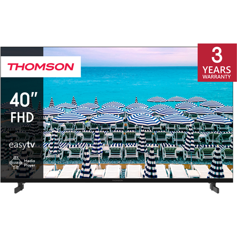 Nauti mielenrauhasta 3 vuoden takuulla Thomson TV:lle. A+ paneelin laatu: Terävät kuvat ilman kuolleita pikseleitä A+ paneelin ansiosta. Kokoaminen Euroopassa: Parhaan laadun ja lyhyempien kuljetusetäisyyksien vuoksi.