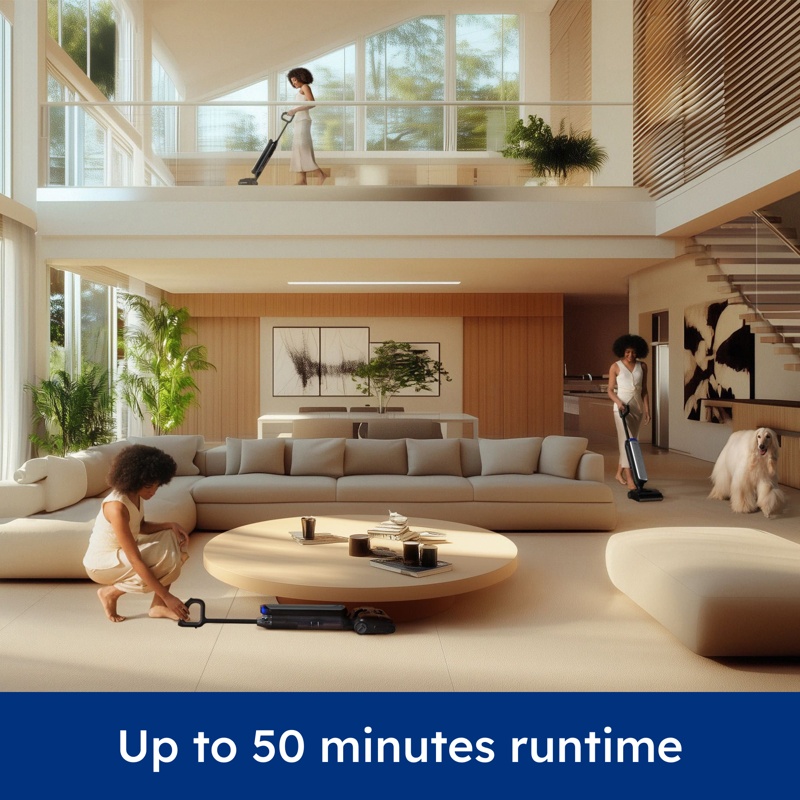 - Jopa 50 minuutin käyttöaika – Tehokas akku mahdollistaa koko kodin siivouksen yhdellä latauksella
