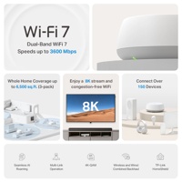 Deco BE22 tuo kotiisi uusimman Wi-Fi 7 -teknologian ja jopa 3,6 Gbps:n nopeuden (2882 Mbps 5 GHz + 688 Mbps 2,4 GHz). Tämä takaa sujuvan 8K-sisällön suoratoiston, nopean latauksen ja vakaan langattoman verkon jokaiselle laitteellesi ilman viiveitä.