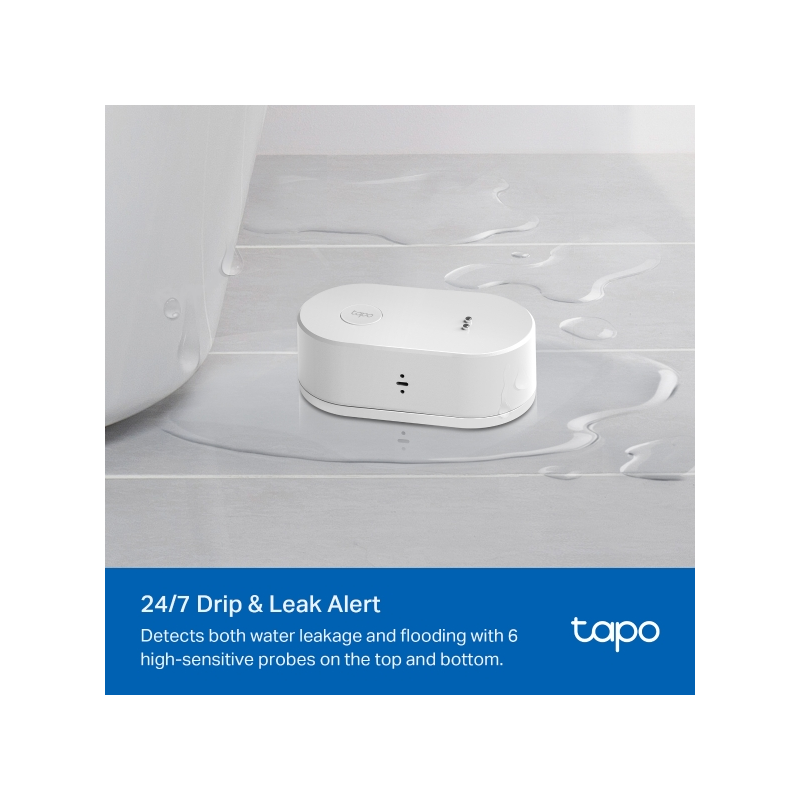 TP-Link Tapo T300 -vesivuototunnistimessa on kuusi erittäin herkkää anturia ylä- ja alapuolella, joten se havaitsee sekä vesivuodot että tulvat ja hälyttää sinut välittömästi 90 dB:n hälytyksellä. Se voi myös käynnistää hälytyksen Tapo H100 -keskusyksikön avulla lisäkuuluvuuden varmistamiseksi. Näin voit puuttua tilanteeseen heti ja estää pahemmat vesivahingot.