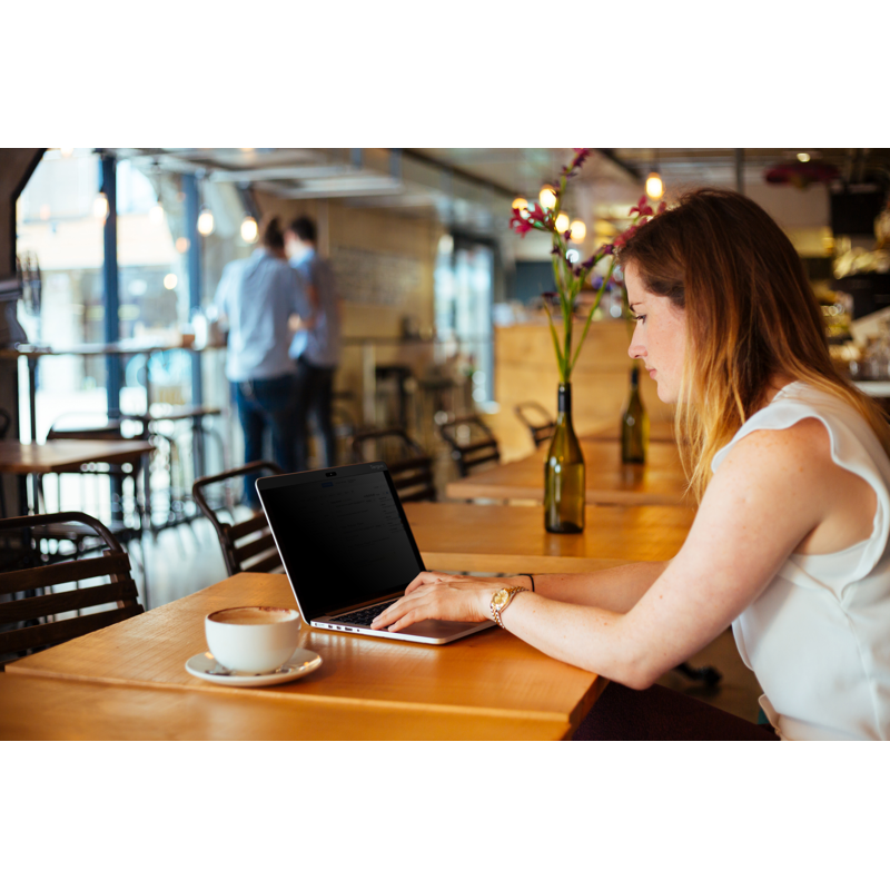 - Helposti kiinnitettävä ja irrotettava tietoturvasuoja kaventaa näytön katselukulmaa