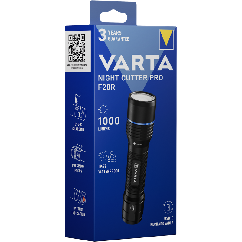 - Erittäin kirkas ja tehokas USB-C-ladattava taskulamppu viidellä valotilalla ja portaattomalla Precise Focus -tarkennuksella
