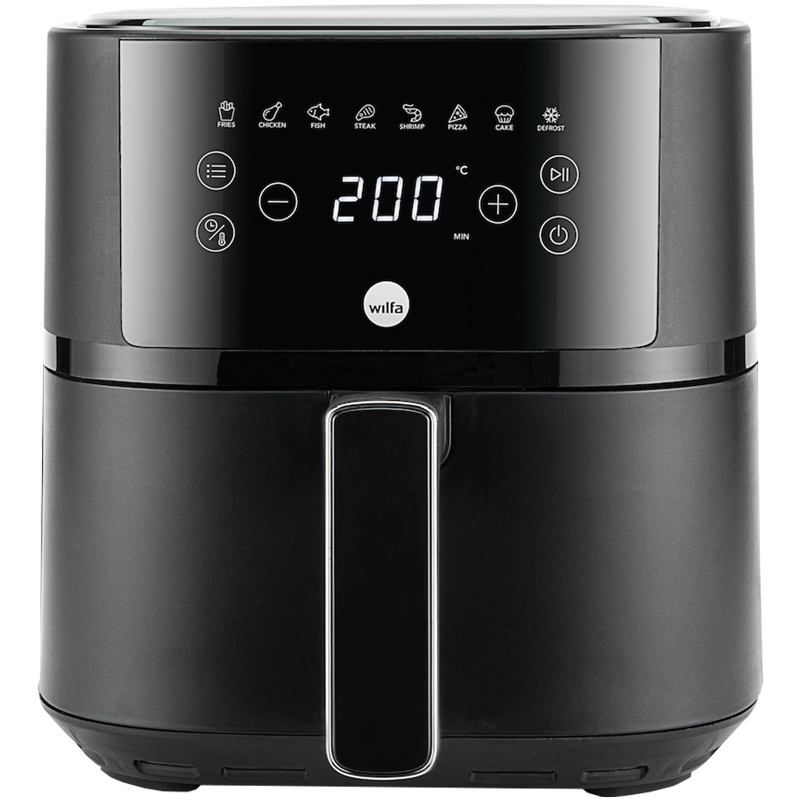 Wilfa AF-40B Air Fryer on varustettu digitaalisella näytöllä, josta näet lämpötilan ja jäljellä olevan kypsennysajan. Voit säätää ajan ja lämpötilan (30-200°C) itse tai käyttää valmiita ohjelmia, joita on kahdeksan erilaista. Valittavissa olevat ohjelmat antavat täydelliset asetukset yleisimmille toiminnoille (esimerkiksi ranskanperunat, kanansiivet, katkaravut ja kala) ja tekevät ruoanvalmistuksen helpoksi. Kun valmistusprosessi on puolivälissä, laite piippaa kolme kertaa muistuttaen sinua kääntämään ruoan. Irrotettavan kypsennyskorin ansiosta ruokaa on helppo myös tarvittaessa ravistaa kesken kypsennyksen.