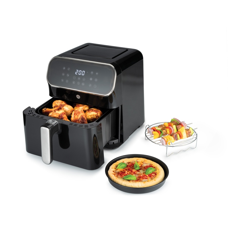 Wilfa AF2B-550 -kiertoilmakypsennin, eli Airfryer valmistaa suosikkiruokasi kuuman ilman avulla jopa kokonaan ilman lisättyä öljyä, joten voit paistaa jopa 90 % pienemmällä rasvamäärällä. Kypsennä broilerin koivet rapeaksi ja mureaksi ilman ylimääräistä rasvaa.