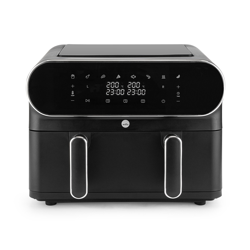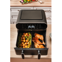 Kahdeksan esiasetetun ohjelman ansiosta sinun on helppo valita täydelliset asetukset ruoanlaittoon. Valitse ruoka, ja Dual Zone määrittelee automaattisesti suositellun ajan ja lämpötilan. Esiasetetut ohjelmat ovat: ranskalaiset perunat, broileri, pizza, pihvi, kala, katkaravut, lämpimänäpito ja kuivatus.