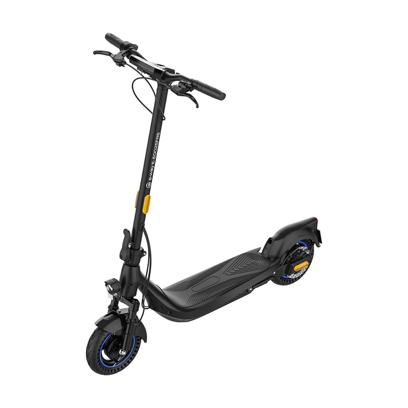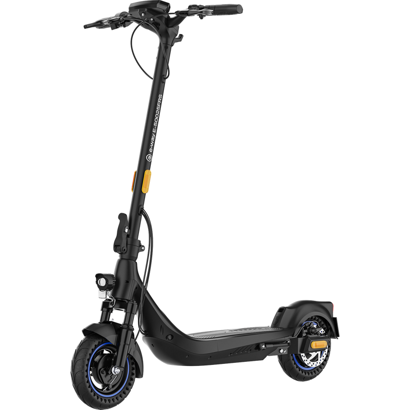 E-50025FRS pystyy myös vaivatta kipuamaan jyrkempiä mäkiä jopa 22 %:n nousukulmalla. Akustona on tehokas 37 V ja 10,4 Ah (384 Wh), jonka ansiosta sillä taittaa matkaa jopa 25 km:n verran. Normaaliolosuhteissa toimintamatka on 20–25 km. Akun lataaminen tyhjästä täydeksi kestää n. 5–6 tuntia. Akku saavuttaa täyden kapasiteettinsa muutaman latauskerran jälkeen. Iso LED näyttö kertoo kaiken tarvittavan ja siltä on helppo seurata nopeutta ja akun varaustilaa. Näyttö on suunnattu viistosti, jolloin sen näkee helpommin nopealla vilkaisulla. Nopeuden säätimen yhteyteen sijoitetun valitsimen avulla voit säätää eri ajotiloja ja etuvalon toimintaa. Nyt voit unohtaa myös joitakin sähköpotkulautoja vaivaavat rengasongelmat, sillä E-Way E50025FRS:ssä käytetään 10" Honeycomb-renkaita, joissa ei ole helposti rikkoutuvaa sisäkumia! Uuden etu- ja takajousituksen ansiosta matkan tekeminen on kuitenkin aikaisempaa mukavampaa!