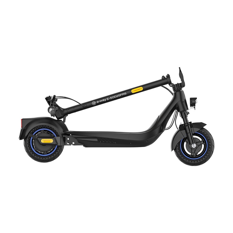 E-Way E-50025FRS on valmistettu erittäin kestävästä alumiinista, jota käytetään tunnetusti myös ilmailualalla kevyen, mutta erittäin vahvan rakenteensa ansiosta. E-50025FRS painaa n. 21 kiloa, jolloin sen voi ottaa mukaan, vaikka junaan tai autoon ja kokoontaitettavan rungon ja ohjaustangon ansiosta se vie myös kohtalaisen vähän tilaa. Suhteellisen kompaktista koosta huolimatta se pystyy kuljettamaan eri kokoisia käyttäjiä heidän maksimipainonsa ollessa 120 kg. Kaikissa E-Way potkulaudoissa on latauspistoke sijoitettuna näytön yhteyteen, jolloin sinne ei mene likaa tai rapaa maantasolta.