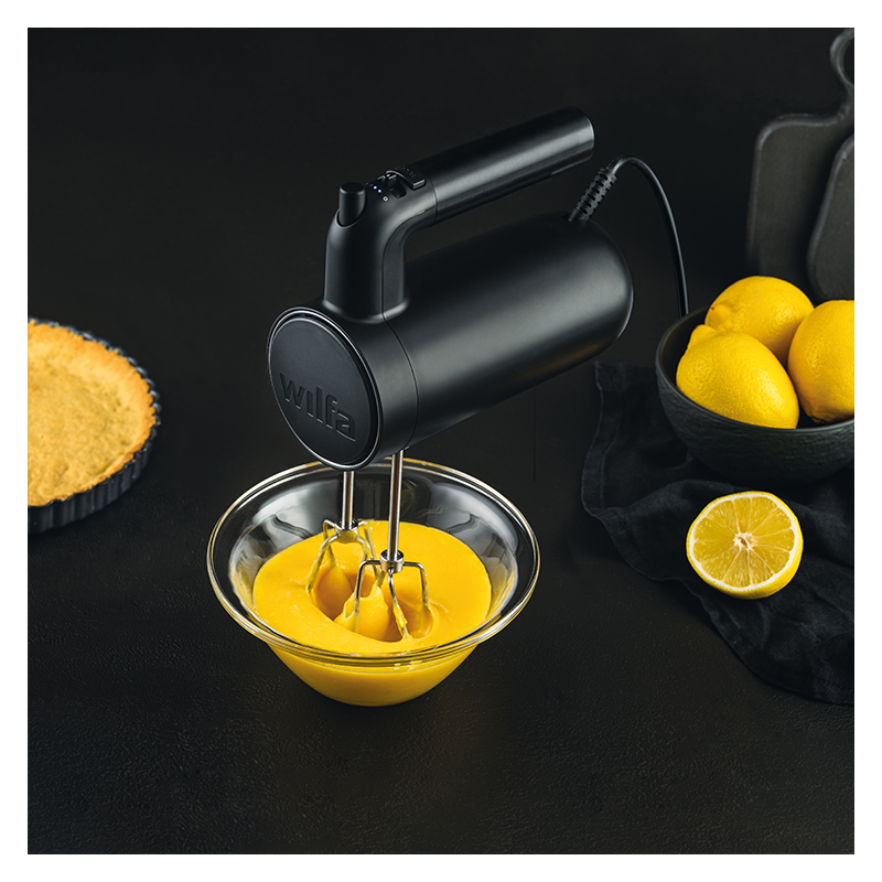 Tämä mattamusta sähkövatkain on muotoiltu tyylikkäästi huomioiden paitsi tehokas käyttö ja käyttäjäystävällisyys, myös ulkonäkö ja se, miten tämä vatkain yhdessä useiden muiden Wilfan keittiölaitteiden kanssa luo täydellisen pohjoismaisen ilmeen keittiöösi.
