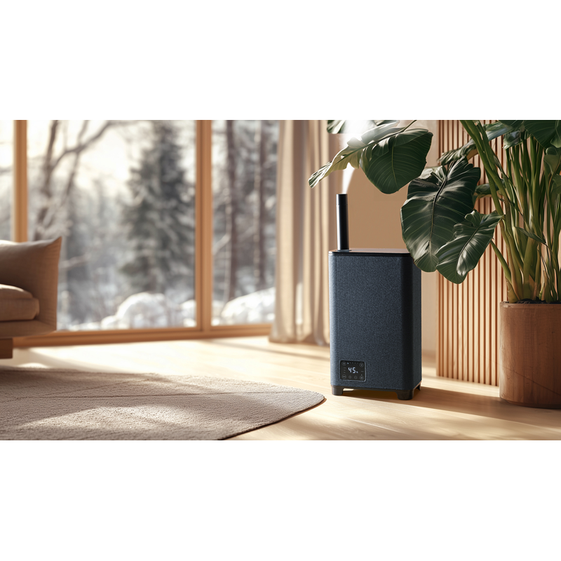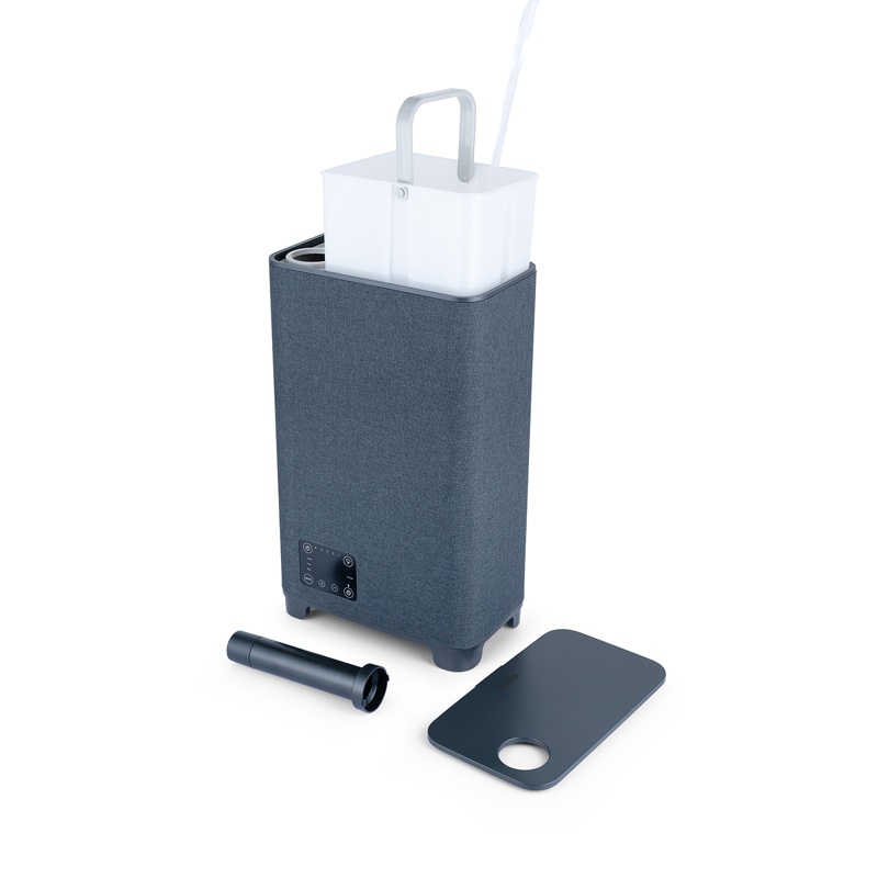 - Kangaspäällysteinen tyylikäs muotoilu sulautuu kauniisti kaikkiin koteihin ja iso, irrotettava vesisäiliö tekee täyttämisestä vaivatonta