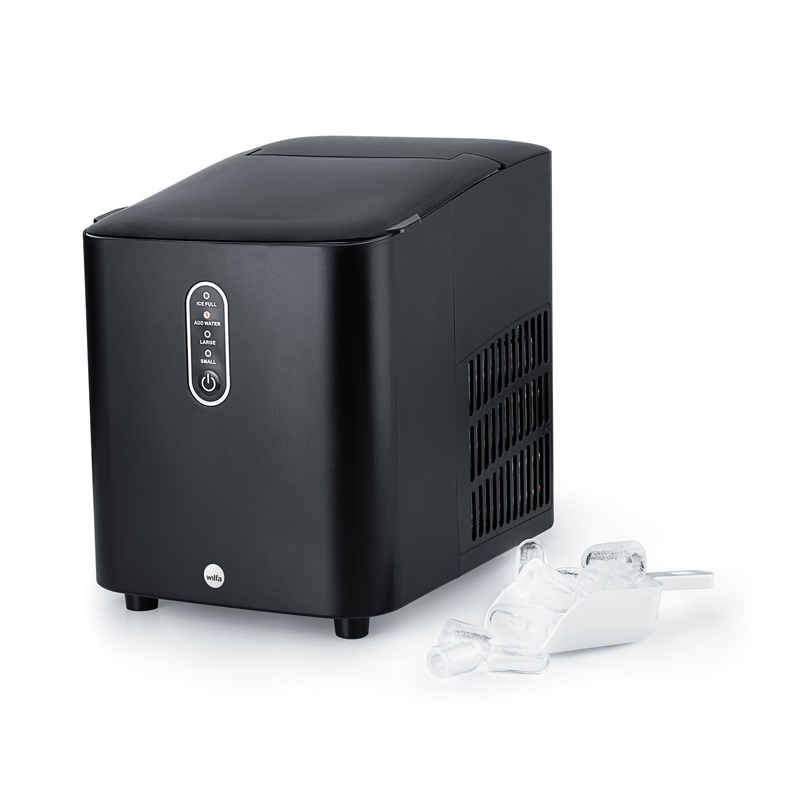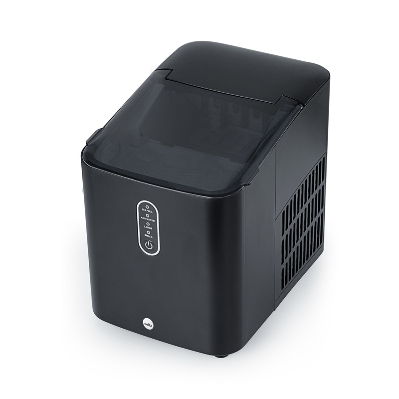- Tyylikkään mattamusta ja tehokas jääpalakone, joka tuottaa 12 kg jäätä 24 tunnissa