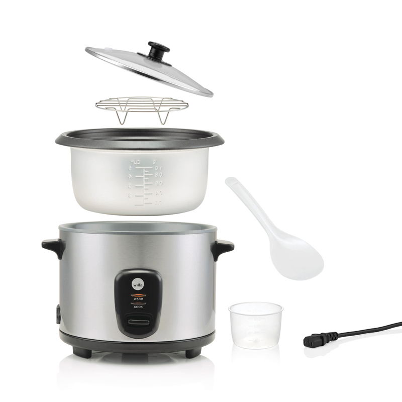 Riisinkeitin Wilfa INARI takaa ateriallesi täydellistä riisiä joka kerta!INARI valmistaa kerrallaan 2 litraa valmista riisiä automaattisesti ja pitää sen lämpimänä ruokailuun saakka. Voit valmistaa myös puuroa tai höyryttää vihanneksia mukana toimitettavalla höyryritilällä.Irrotettavan virtajohdon ansiosta voit laittaa riisinkeittimen suoraan tarjoilupöydälle. Kulho on irrotettava ja siinä on tarttumaton pinnoite, joten puhdistus on helppoa. Höyryritilän lisäksi laitteen mukana toimitetaan mittakuppi sekä riisilusikka.