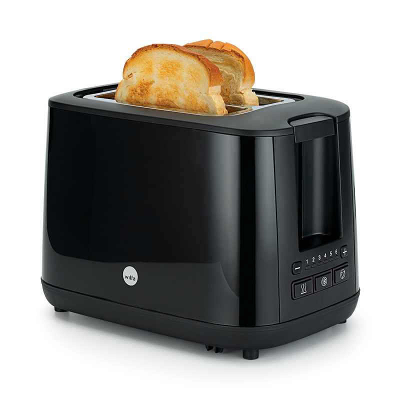 - Kiiltävän musta, kompakti ja tyylikäs leivänpaahdin pohjoismaisella muotoilulla