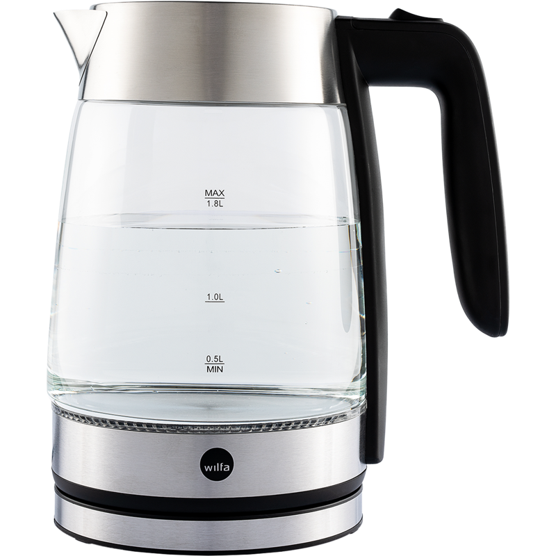 Kaunis lasinen vedenkeitin on valmistettu korkealaatuisesta, kuumuutta kestävästä borosilikaattilasista. Vedenkeitin sopii päivittäiseen käyttöön ja sen 2200 watin teho keittää veden nopeasti, jopa 1,8 litraa kerrallaan. Turvallisuuden vuoksi vedenkeitin sammuu itsestään kun kiehumispiste saavutetaan tai jos keitin kytkeytyy päälle tyhjänä. Piilotettu lämpöelementti, 360° pyörivä pohja ja kahvan painikkeesta avautuva kansi tekevät vedenkeittimestä helpon käsitellä ja käyttää vain yhdellä kädellä.
