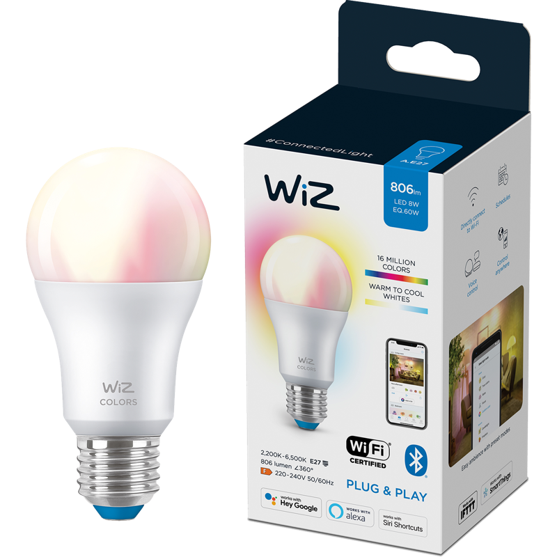 WiZ full color -älylamppu valaisee kotisi upealla värikkäällä valolla. Älylamppu muistuttaa ulkomuodoltaan perinteistä hehkulamppua, ja se sopii nykyisiin valaisimiisi. Valittavanasi on 16 miljoonaa eri värisävyä, ja voit myös muuttaa lampun värilämpötilaa. Nauti Circadian Rhythm -toiminnosta (vuorokausirytmi), jonka ansiosta valaistus mukailee vuorokaudenrytmiä muuttaen valaistustasi viileän kirkkaasta valosta lämpimämpiin sävyihin päivän aikana, mikä parantaa myös hyvinvointiasi. Koe myös, kuinka dynaamisten valotilojen ansiosta kotisi kylpee upeissa värikkäissä valotehosteissa, jotka jäljittelevät mm. meren aallokkoa tai tulen loimua luoden ainutlaatuisen tunnelman arjen hetkiin. Valaistuksen ohjaaminen on helppoa maksuttomalla ja käyttäjäystävällisellä WiZ-sovelluksella. Valaistusta voidaan ohjata myös äänikomennoin älypuhelimella tai ääniavustajalla. WiZ automatisoi kotiisi valaistuksen, joka tukee myös arjen rutiinejasi. Joka tilanteeseen sopivan valaistuksen ohjaaminen ei ole koskaan ollut yhtä helppoa ja hauskaa. Valitse tilanteeseesi sopiva lampun kanta sekä pakkauskoko ja tee kodistasi älykkäämpi!