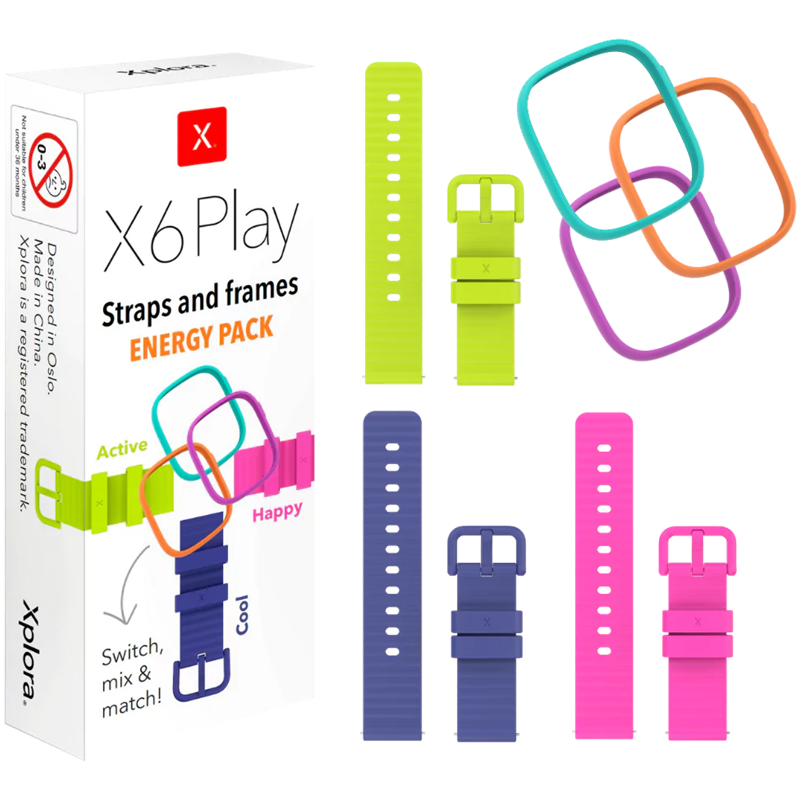 - Xplora X6Play Energy Pack -kellorannekkeiden avulla lapsesi voi nopeasti muokata Xplora-kellopuhelimensa ulkoasua