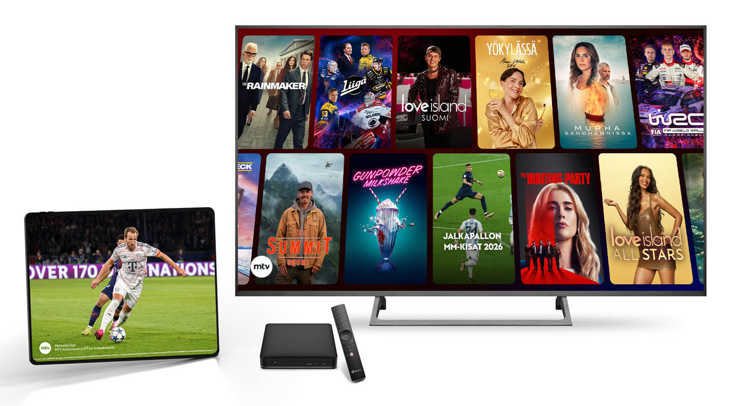 - Suosituimmat maksukanavat ja suoratoistopalvelut, kuten MTV Katsomo, HBO Max ja Netflix
